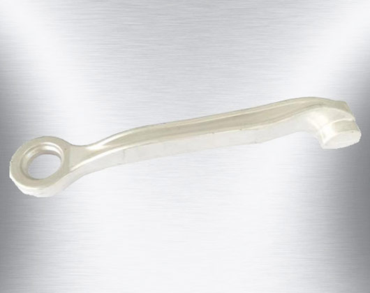 目前鍛造汽車用鋁合金控制臂的材料多為6061和6082鋁合金,鍛坯的來源有擠壓棒材、半連續(xù)鑄造棒材、半連續(xù)鑄造異形錠,對(duì)于擠壓棒材,需要經(jīng)過切斷、輥鍛彎曲、預(yù)鍛、終鍛、熱處理等工序;對(duì)于半連續(xù)鑄造包材,在切斷前需要經(jīng)過均勻化處理;異形錠是指用半連續(xù)鑄造的方式直接制備出錠坯形狀與終端控制臂鍛造產(chǎn)品外形接近的近終形汽車用鋁合金鍛坯,錠坯經(jīng)切片后直接鍛造成型。異形錠相對(duì)于圓棒而言,工序大為縮短,但鑄造質(zhì)量控制更難一些。